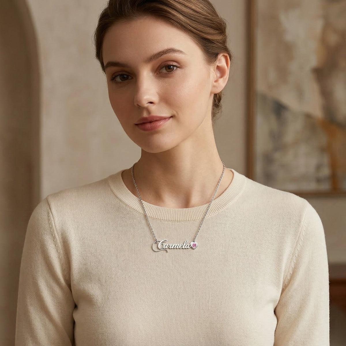 Custom Personalized Arabic & English Name Necklace With Birthstone #3ZX